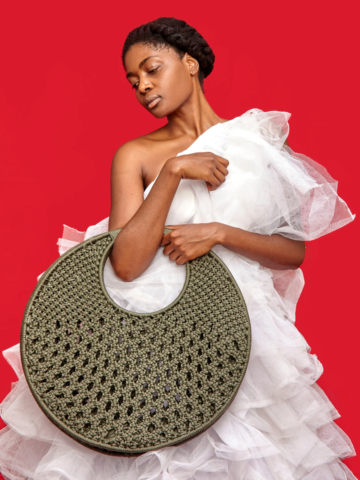 A sculptural masterpiece, the MaZikali Circular Bag is both statement and story. Its spherical form celebrates balance and craftsmanship—transforming from shoulder bag to oversized clutch with effortless ease. Handcrafted with precision, each curve and detail highlights Vanhu Vamwe’s dedication to artisanal excellence. Lightweight yet striking, it pairs seamlessly with both casual daywear and refined evening looks. This bag is a celebration of form and function, a piece that elevates any wardrobe while honoring the rich tradition of Zimbabwean craft.