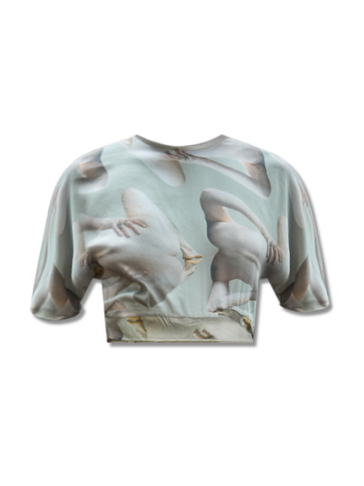 An invitation to embrace your individuality: this unisex Butt-Oh-Body Sculpted Top by Viviers spotlights the brand's artful VIVI print, lending a modern edge to the classic shape. It's crafted from stretch silk in a relaxed fit with a boat neckline, easy dolman sleeves, and a back zip closure. Team yours with the matching Butt-Oh-Body Trapeze Shorts and knee-high boots, as seen in the label's lookbook.