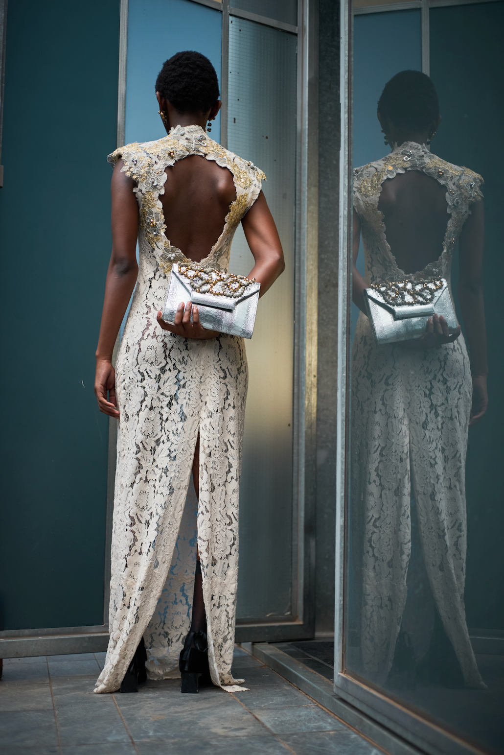 From the romantic lace and 3D floral appliqués to the metallic beading and dramatic open back, this Moonstone Petal Dress by South African brand Viviers is ideal for an evening out. The expertly crafted double-layer construction is shaped with darted details and tulle-covered shoulder pads, carving an hourglass figure, while the subtle grey shade ensures versatility for countless occasions.