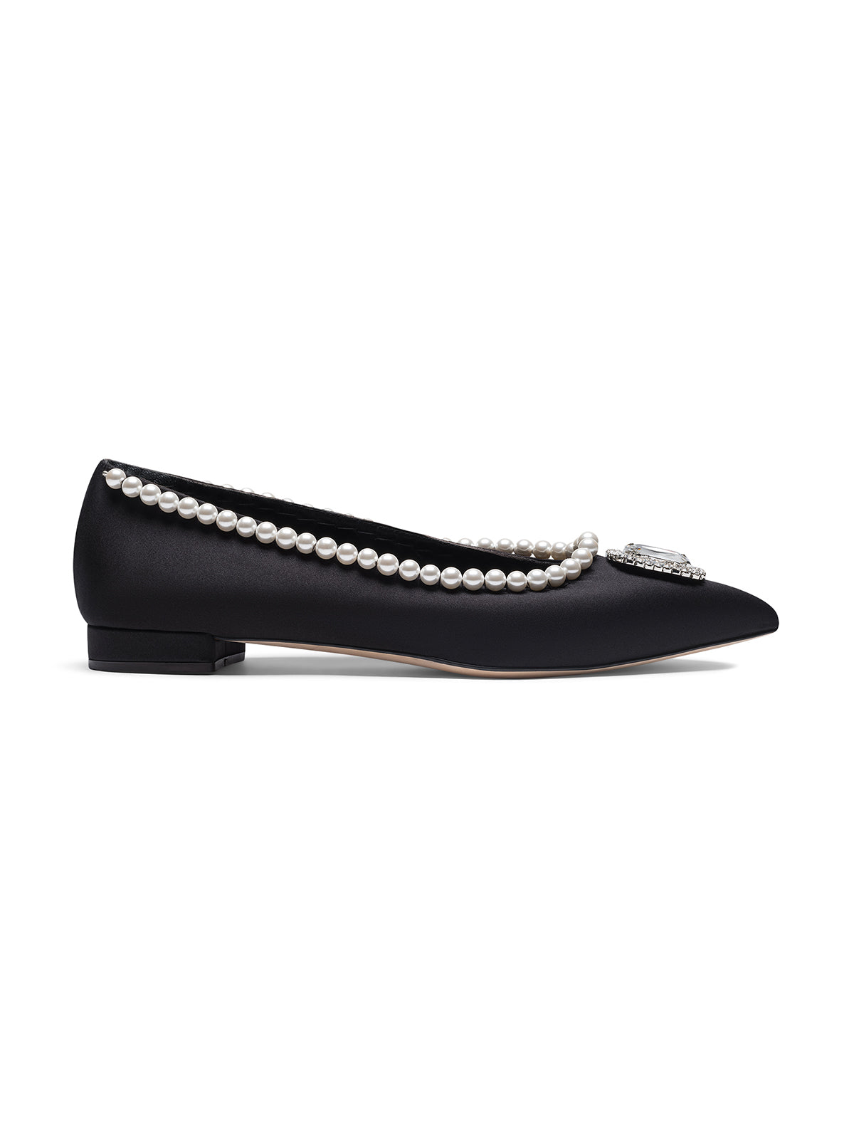 Zena Ziora reimagines the classic ballet flat with understated opulence. The Dame Ballerina has been expertly handcrafted in Italy from smooth silk satin and adorned with a diamanté crystal embellishment at the front. The Maiorca pearl trim adds a touch of regal elegance. Slip yours on with everything from tailored suiting to evening separates.